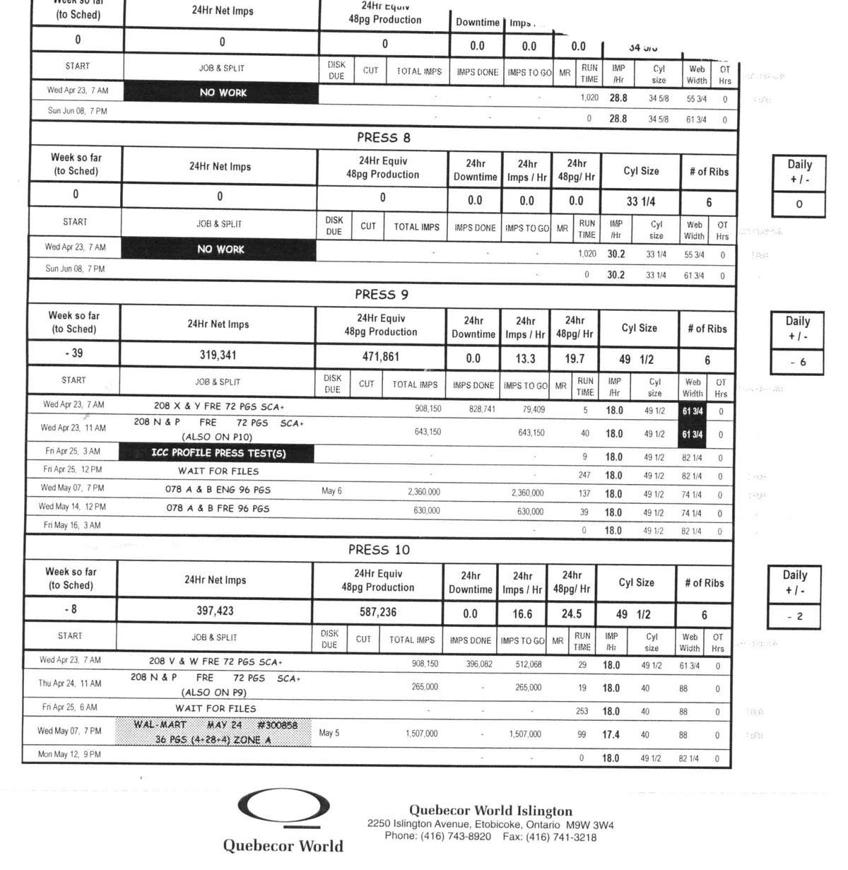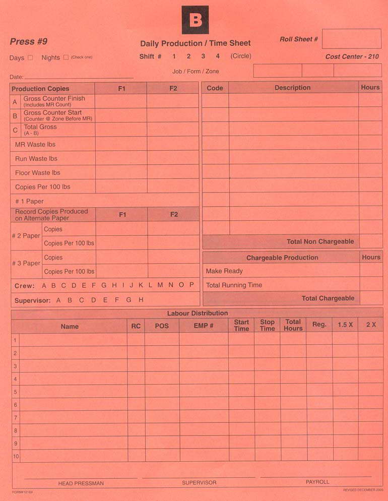- PRODUCTION / TIME SHEET - WIDE VIEW OF BACK OF 9& 10
